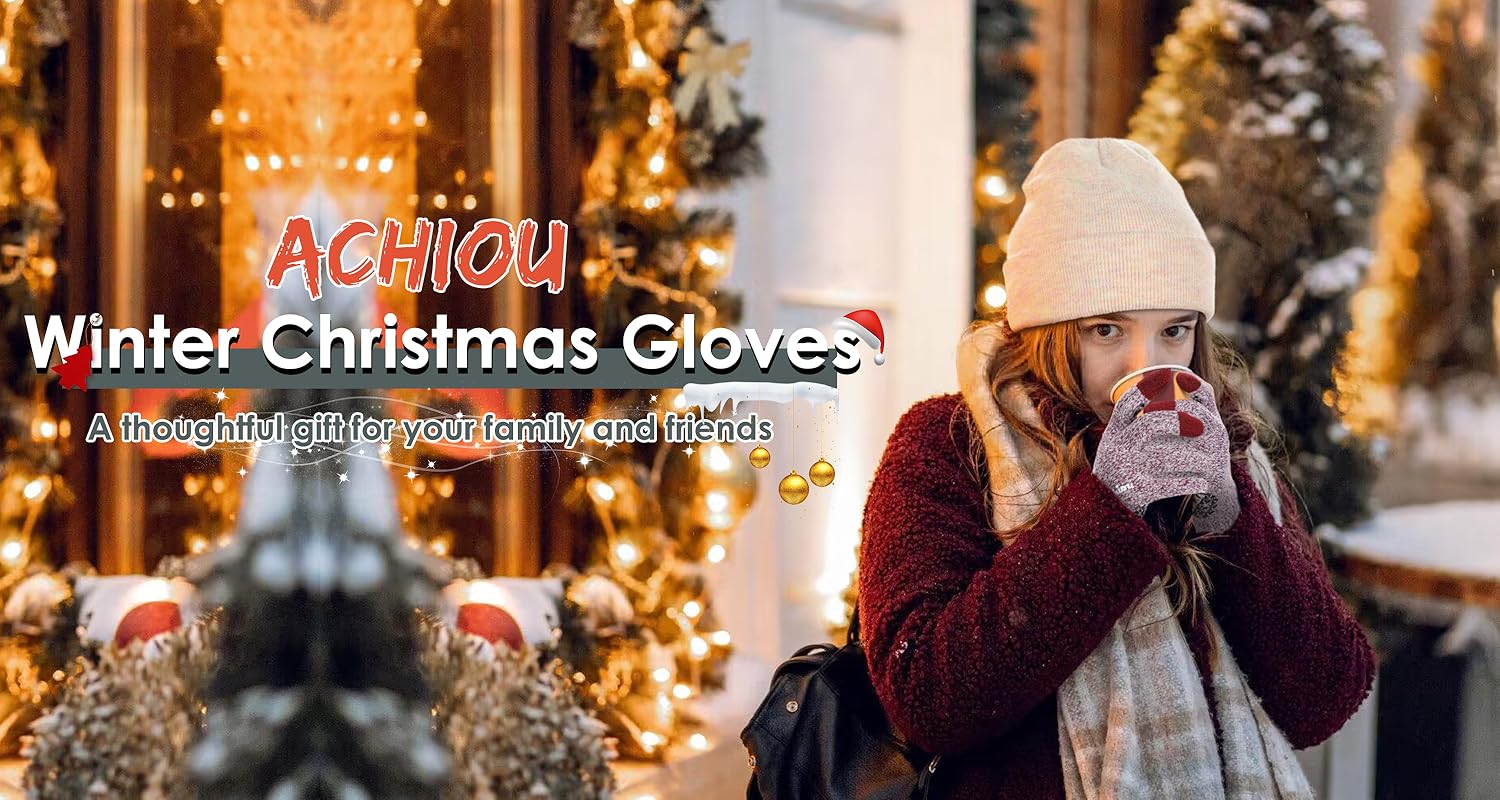 Achiou Women Winter Gloves, Touch Screen Texting Gloves, Elastic Soft Warm Knit Lined, One Size(White)