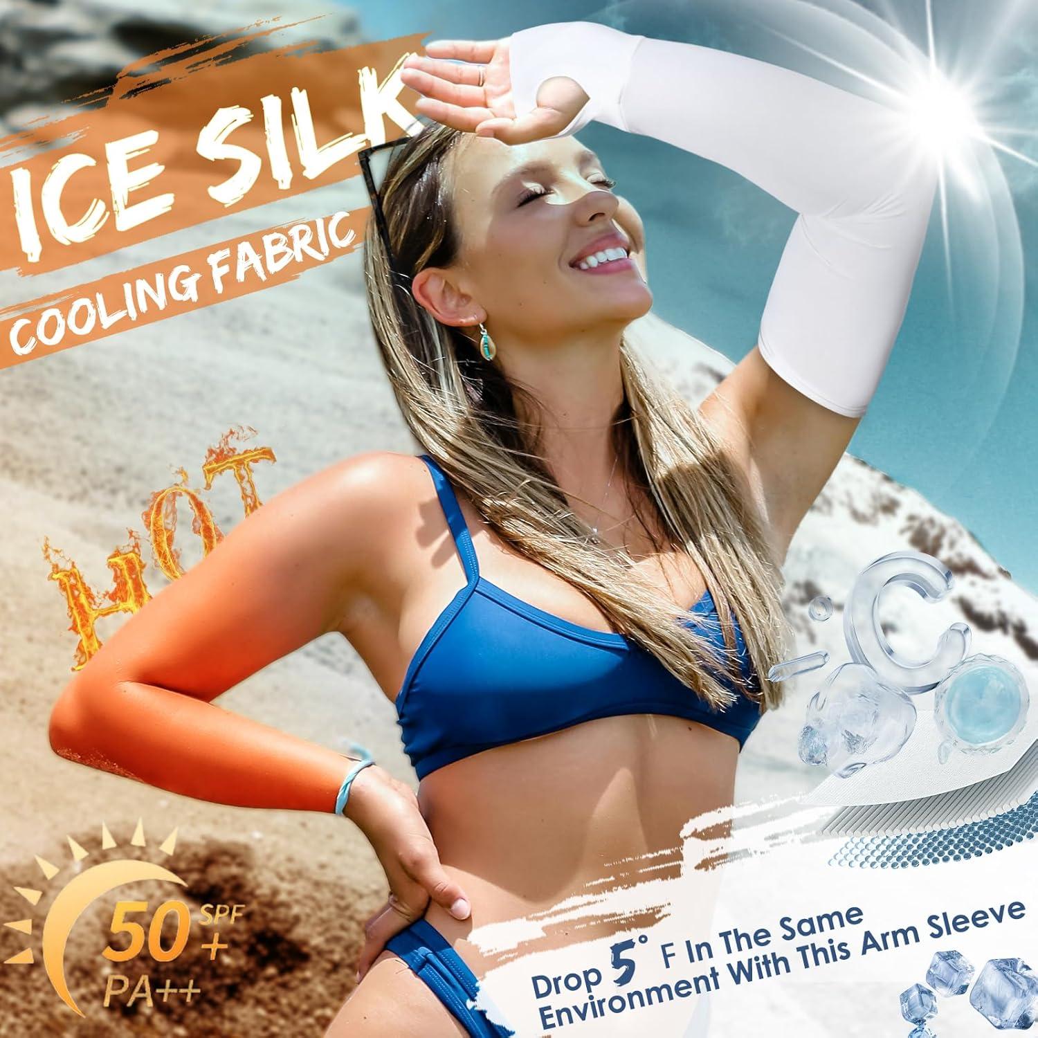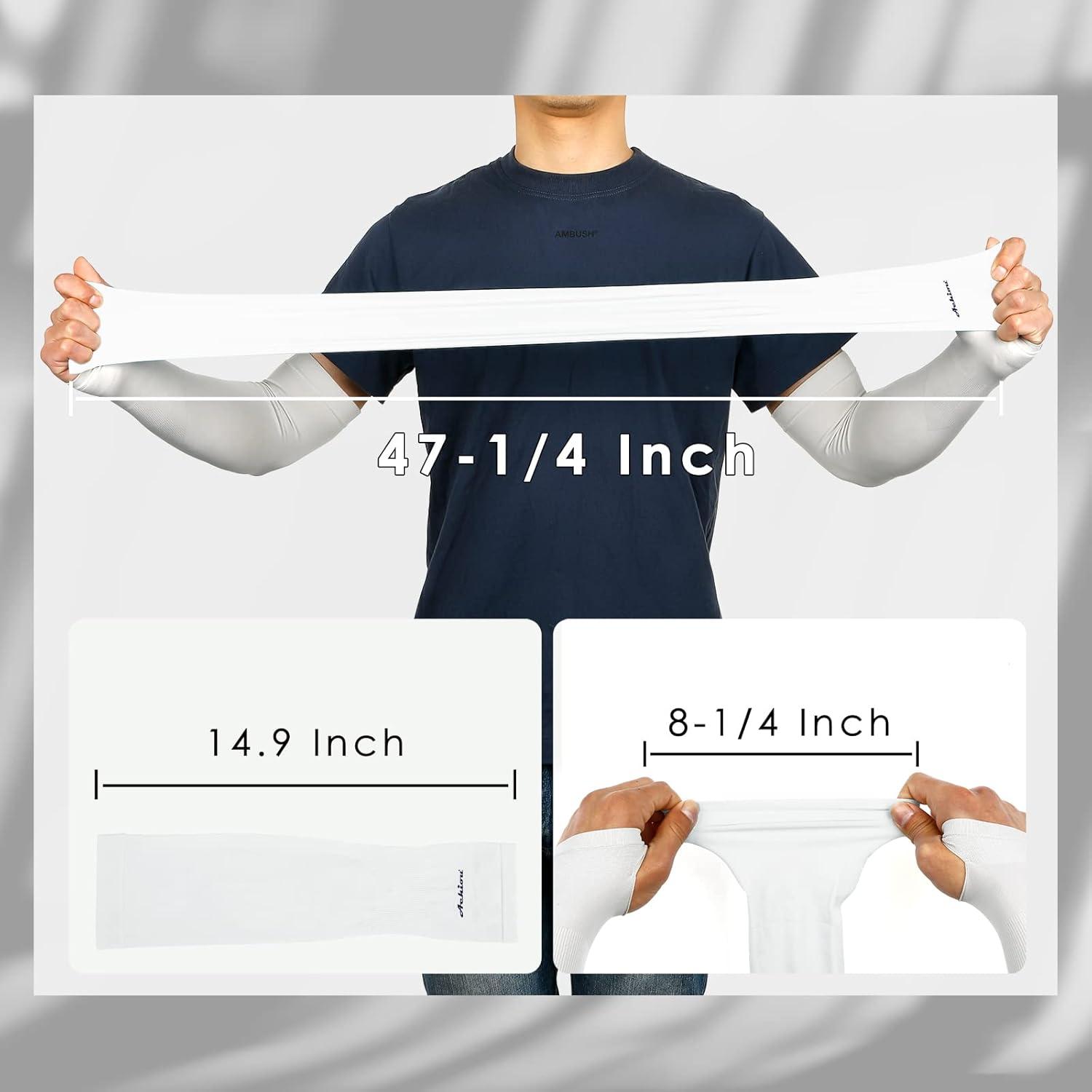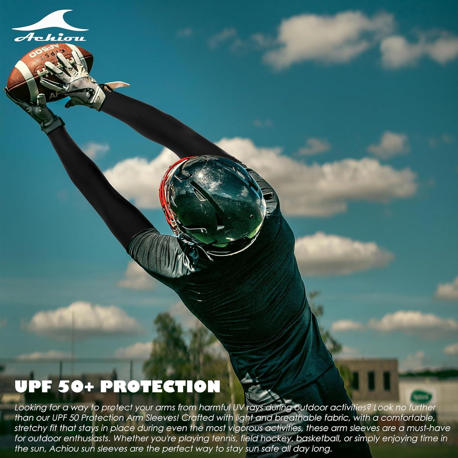 Achiou Arm Sun Sleeves Compression UV Protection Cooling for Men Women Summer Sunblock Basketball Football, Cover Arms Tattoo(2 Pairs: Black White)