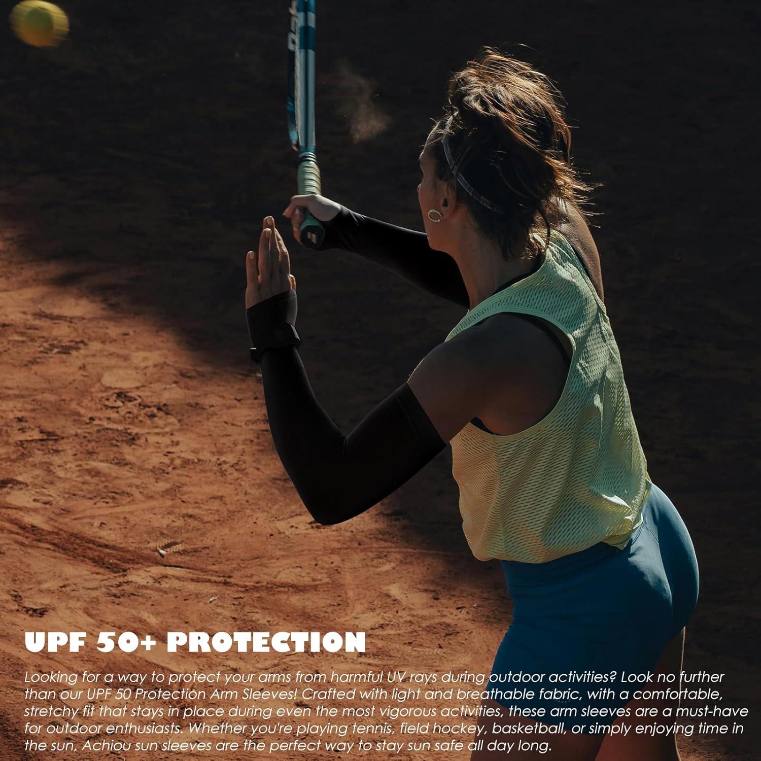 Achiou Arm Sun Sleeves Compression UV Protection Cooling for Men Women Summer Sunblock Basketball Football, Cover Arms Tattoo(3 Pairs: Black)