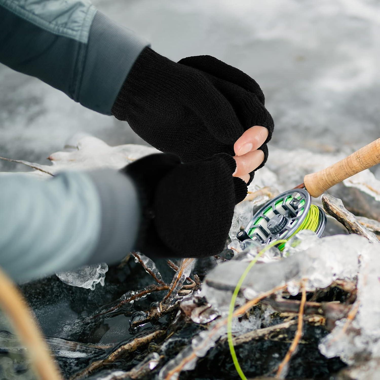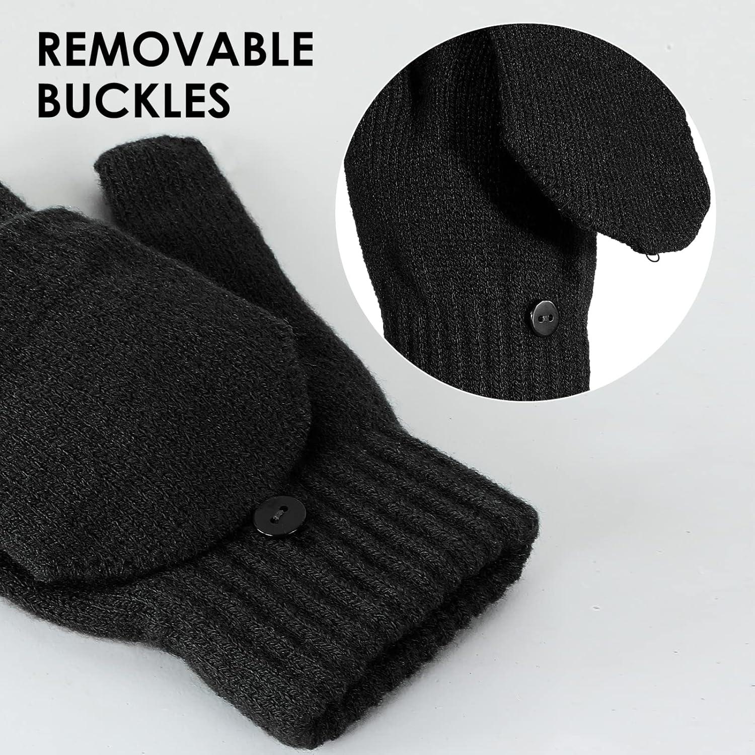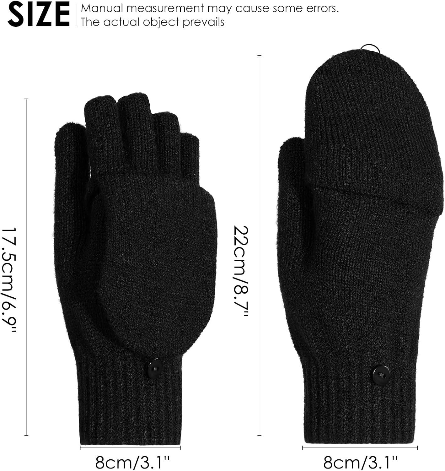 Achiou Convertible Mittens Fingerless Gloves for Men and Women, Thermal Knit Touchscreen Gloves with Flip Cover(Black)