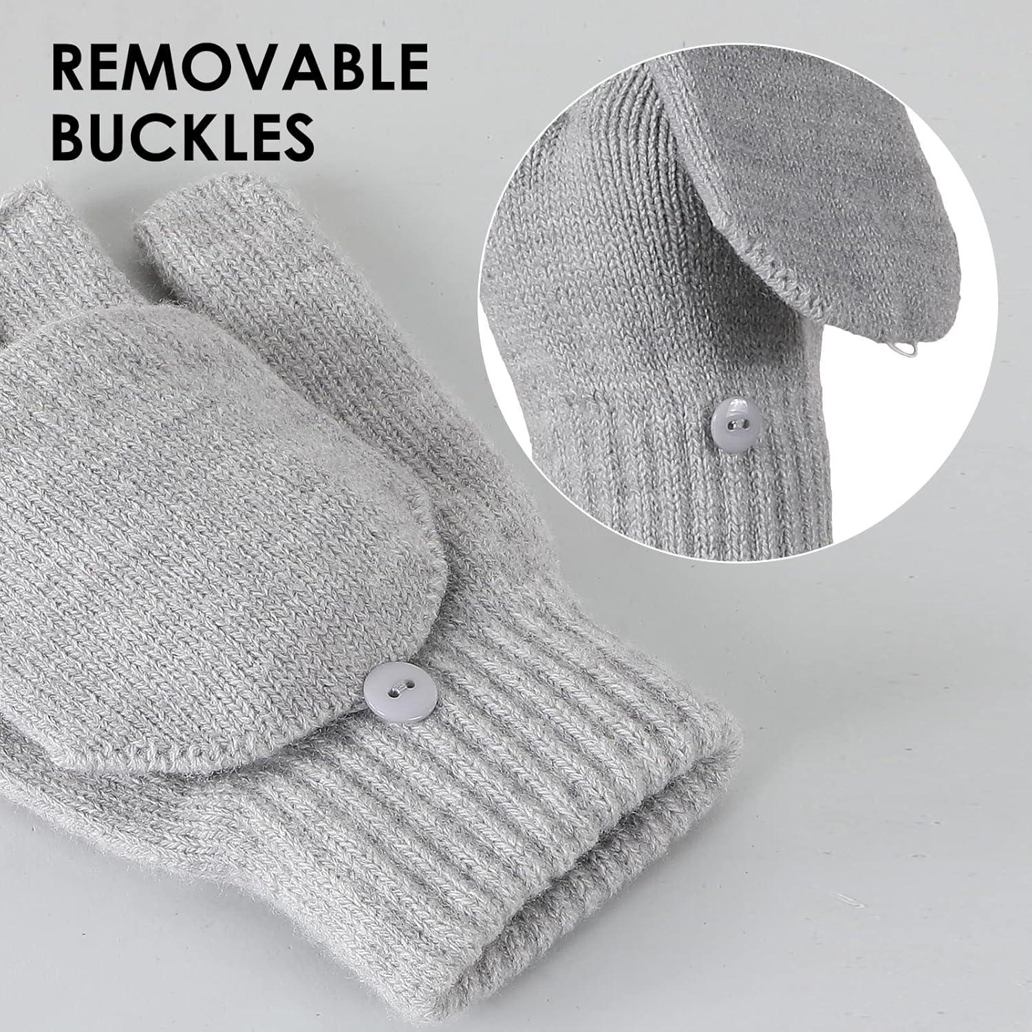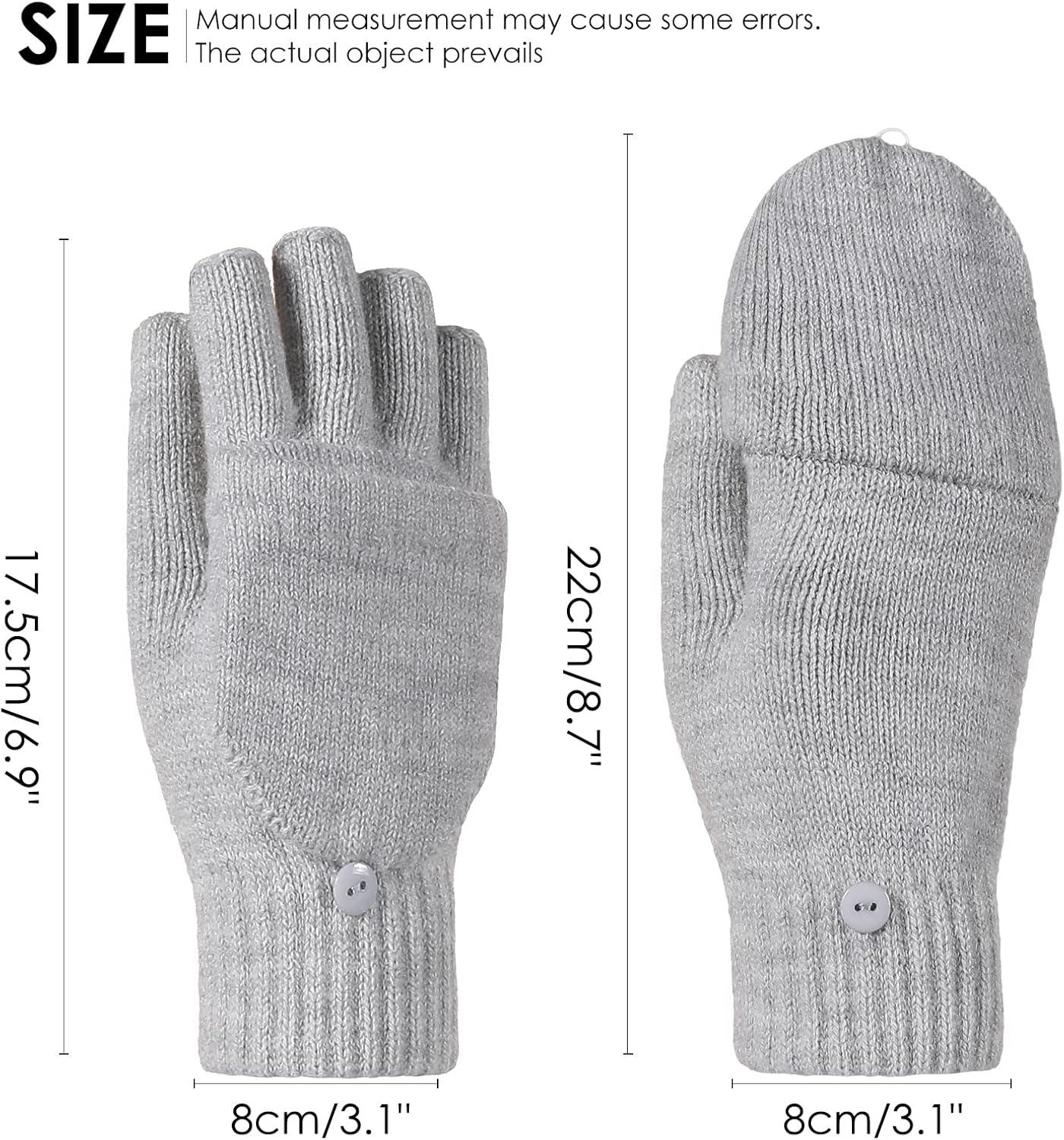 Achiou Convertible Mittens Fingerless Gloves for Men and Women, Thermal Knit Touchscreen Gloves with Flip Cover(Grey)