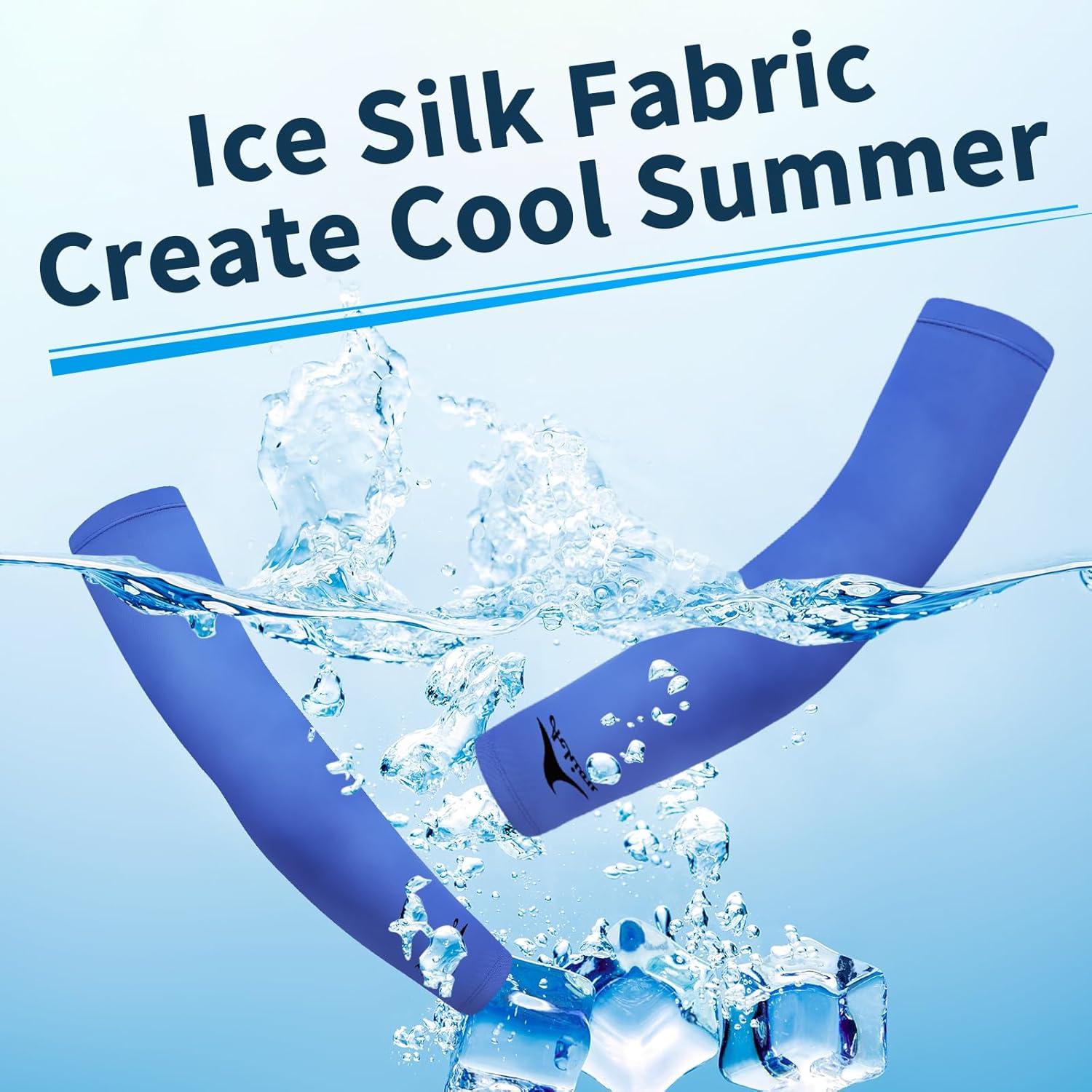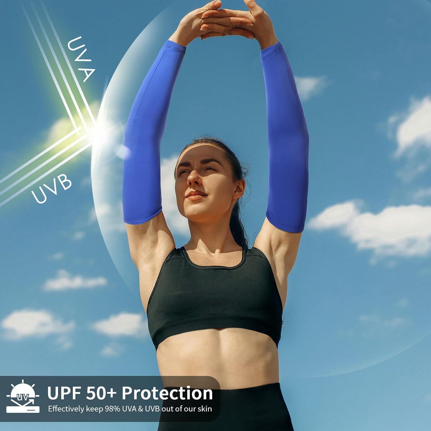 Achiou Cooling Ice Silk Arm Sleeves, Summer UV Sun Protection Compression Sleeves UPF 50+ for Women Volleyball Youth Sports(2 Pairs: 1pair Black 1 Pair Royal Blue)