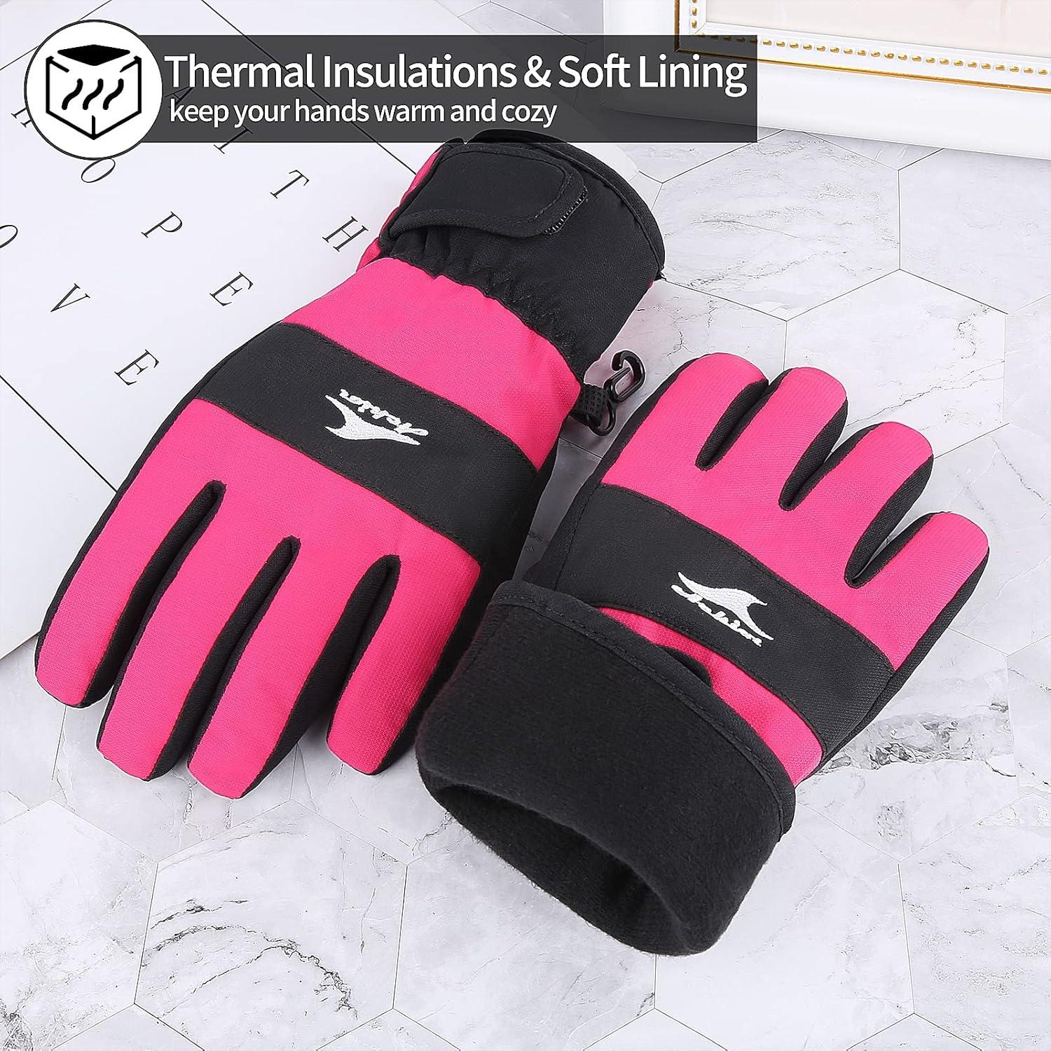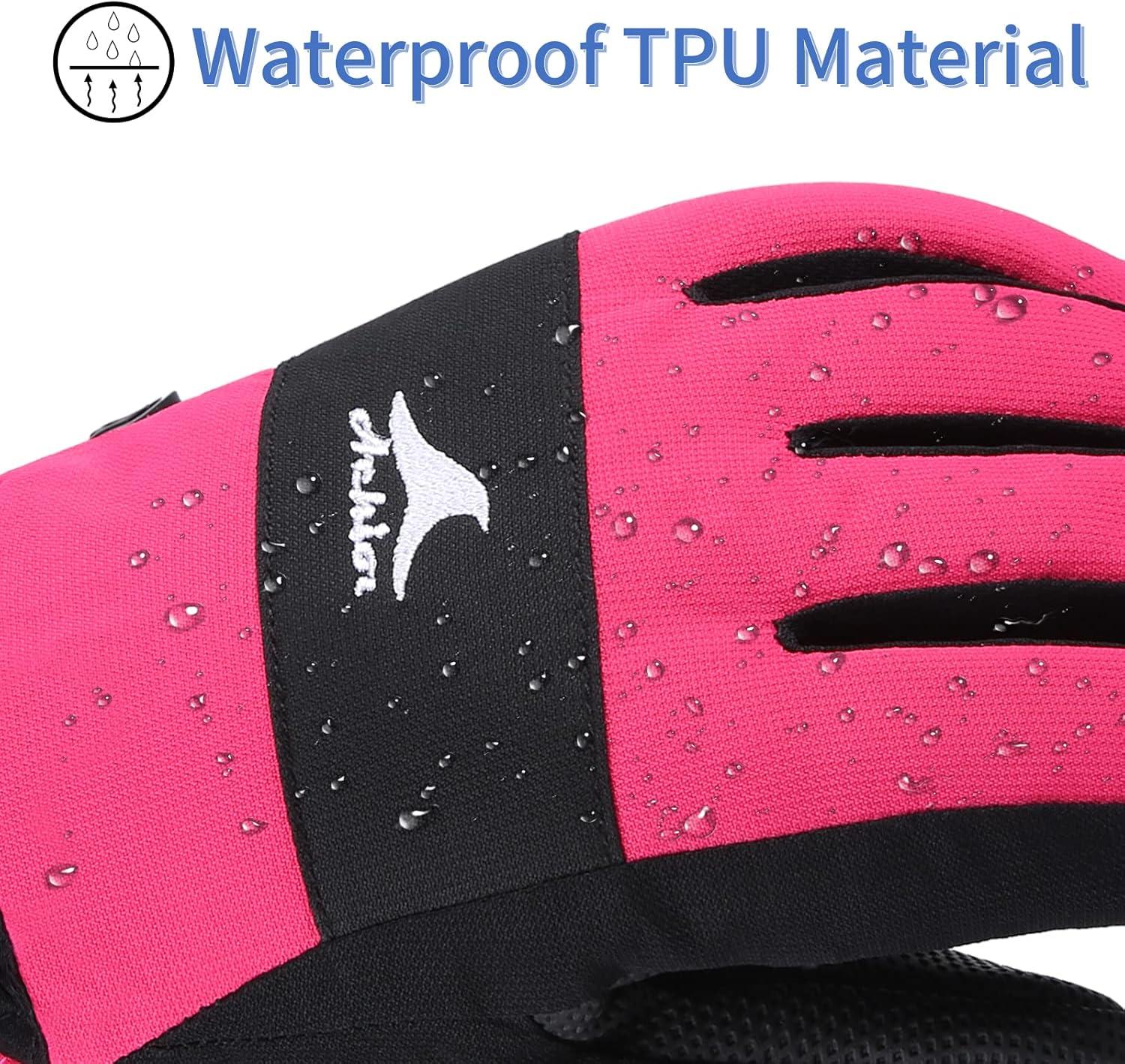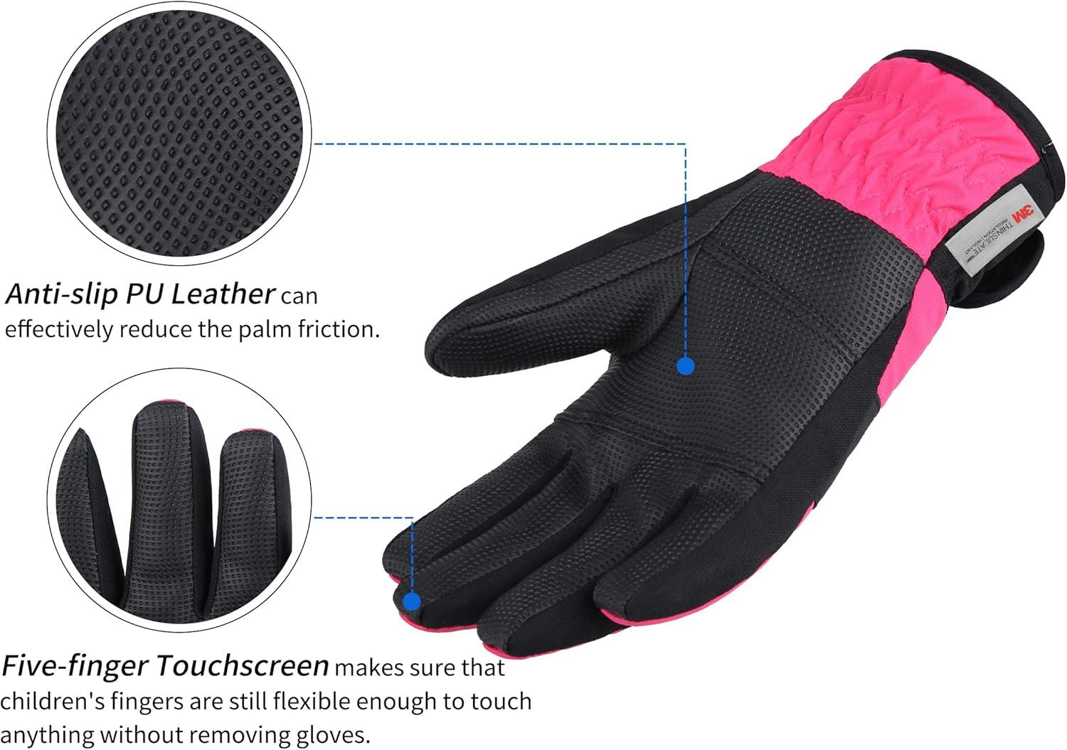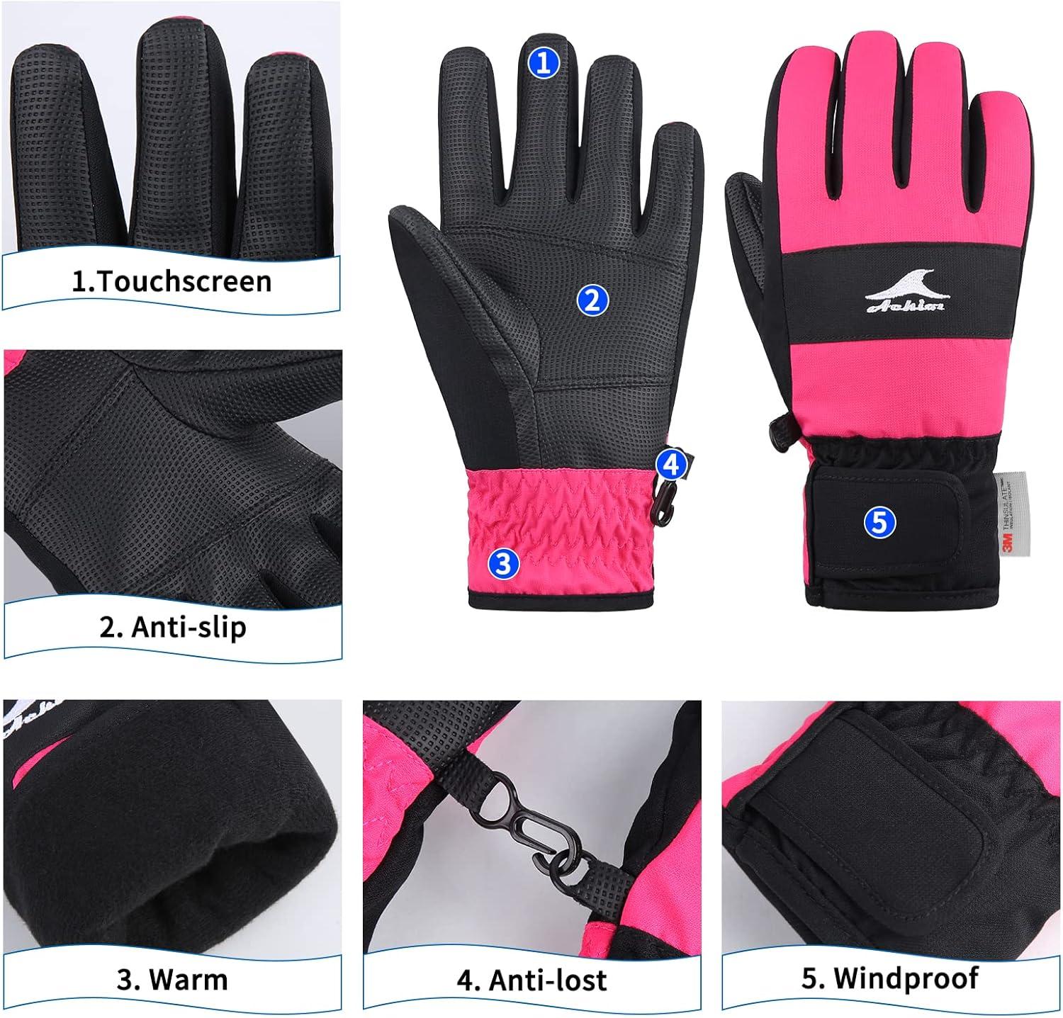 Achiou Kids Ski Gloves, Waterproof Winter Snow Snowboard Gloves Warm Touchscreen for Kids Boys Girls Children Skiing Cycling(Pink)