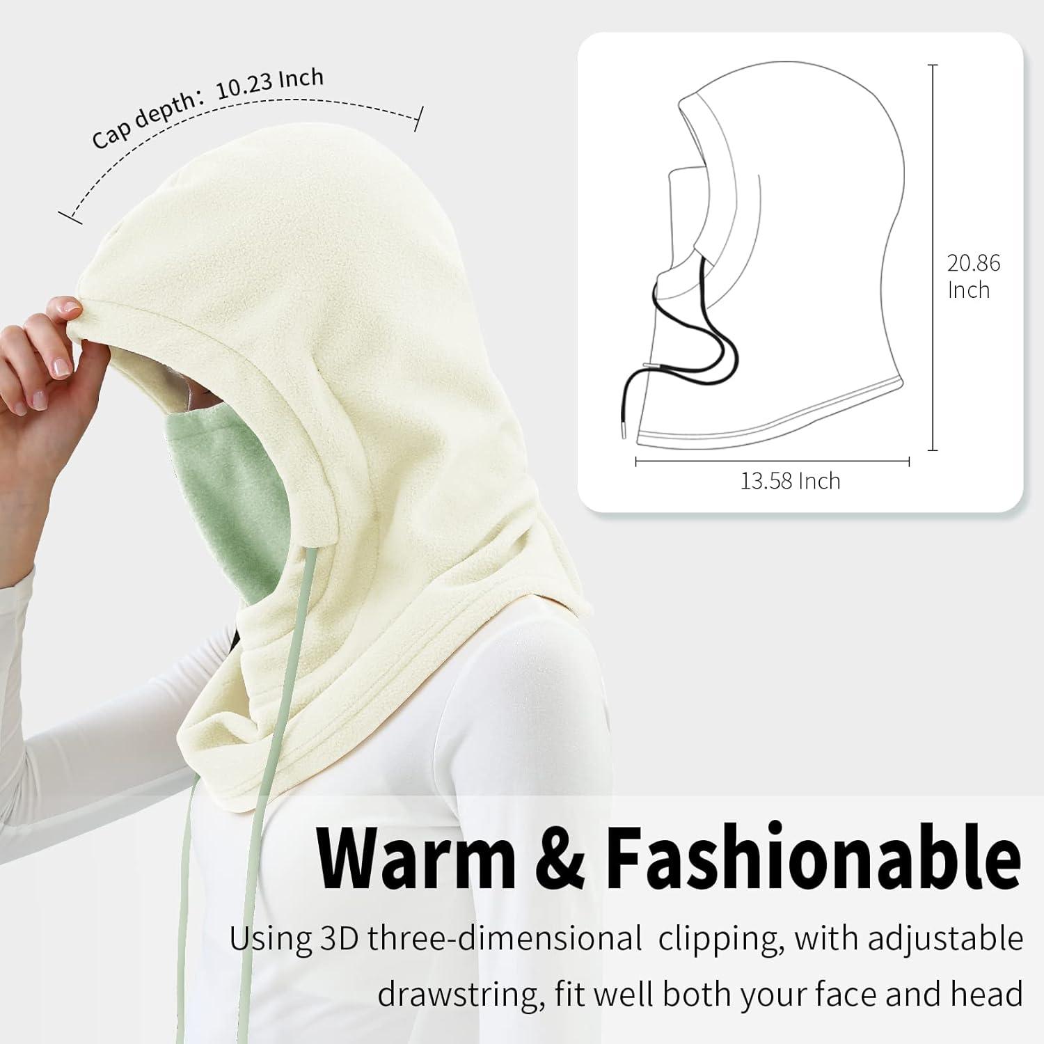 Achiou Ski Mask for Men Women, Winter Balaclava Warm Windproof Face Mask, Full Head Cover Scarf Neck for Cold Weather(White)