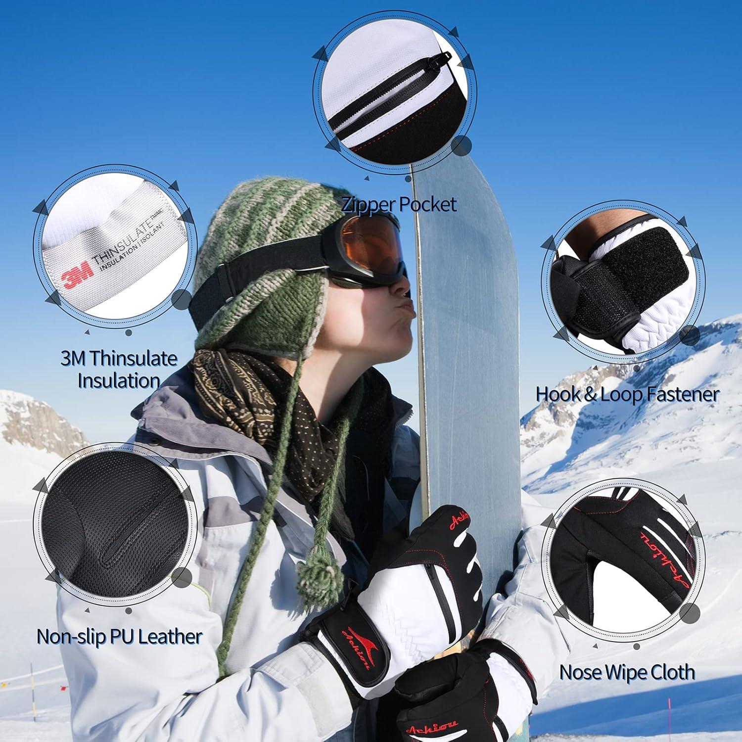 Warm & Cozy Winter Gloves: Achiou waterproof ski gloves are insulated, the comfortable lining fits your hands perfectly, and keeps both hands warm in up to -30°F chilly weather.