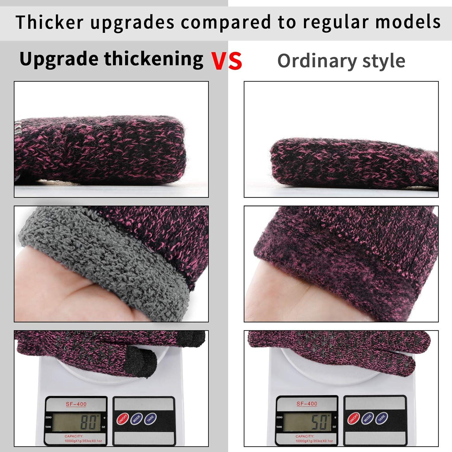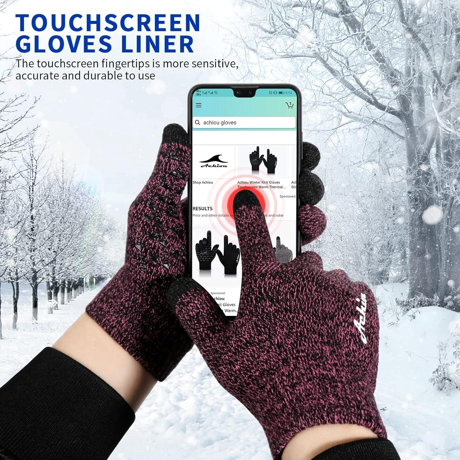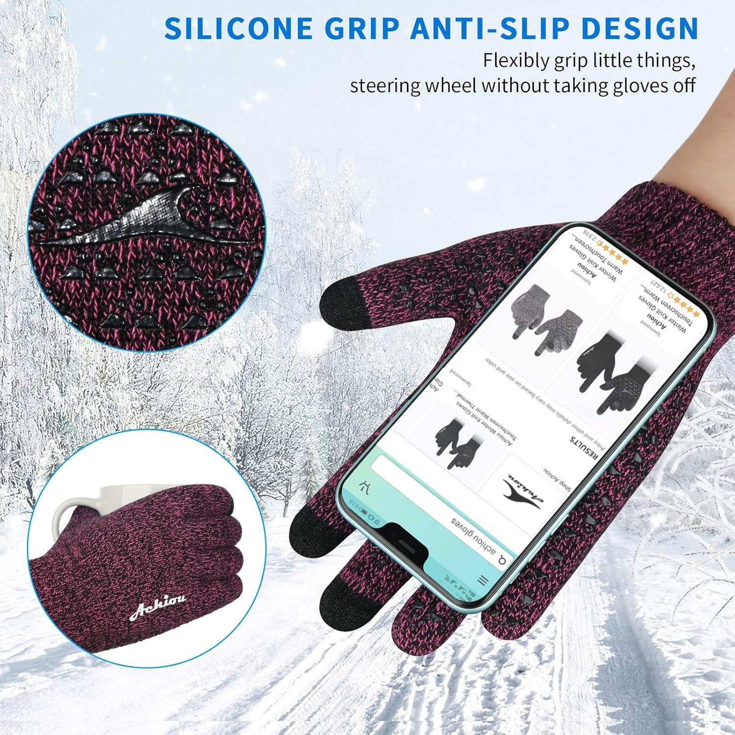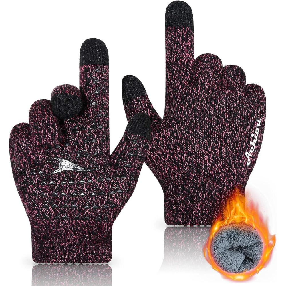 Achiou Winter Gloves for Men Women, Touch Screen Gloves, Upgraded Thicken Anti-Slip Silicone Gel, Thermal Soft Knit Lining(Rose Red Thick)