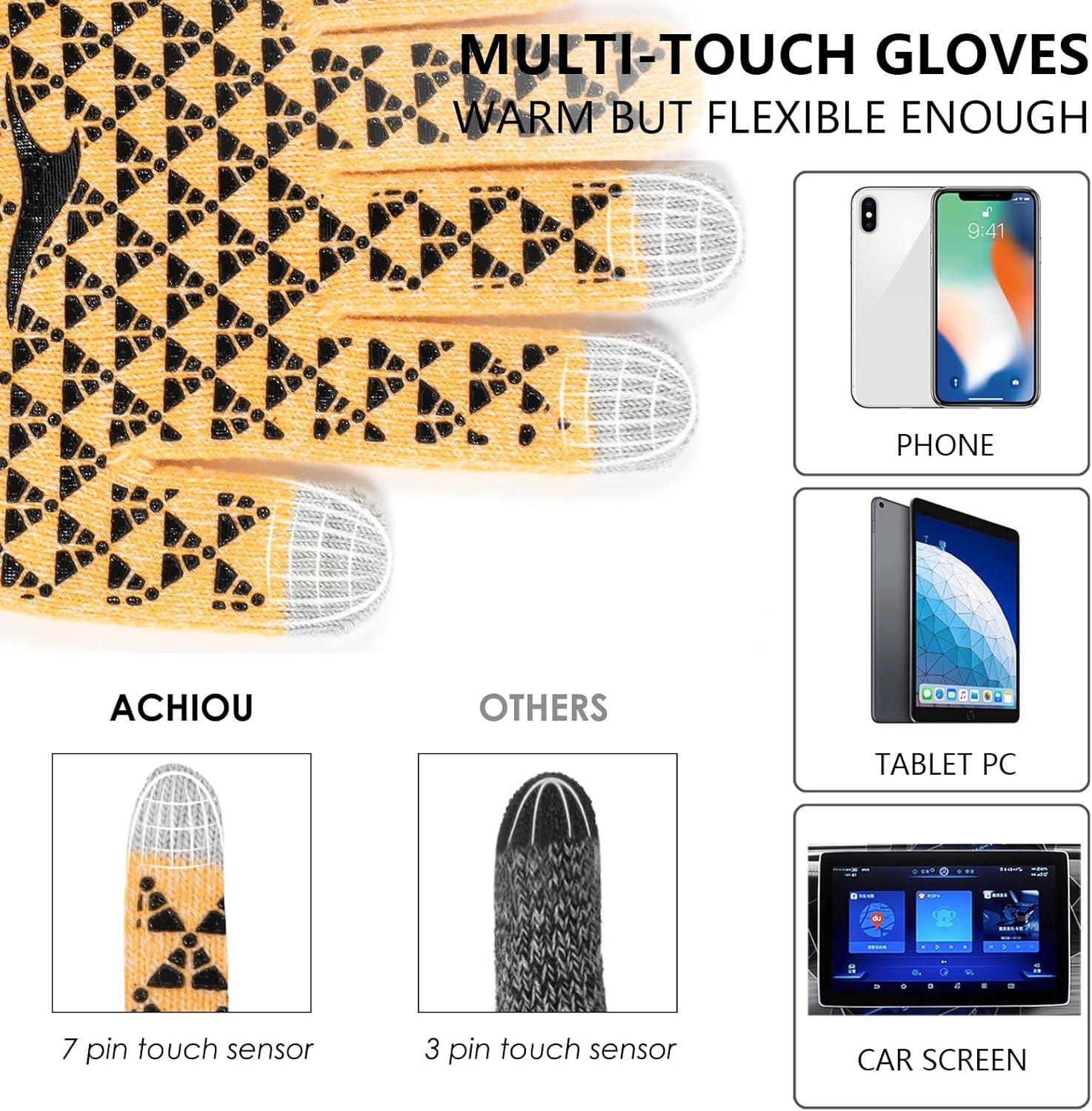 Achiou Winter Gloves, Glove for Men Women, Upgraded Touch Screen Texting Warm Running with Thermal Soft Knit Lining(Angelyellow)