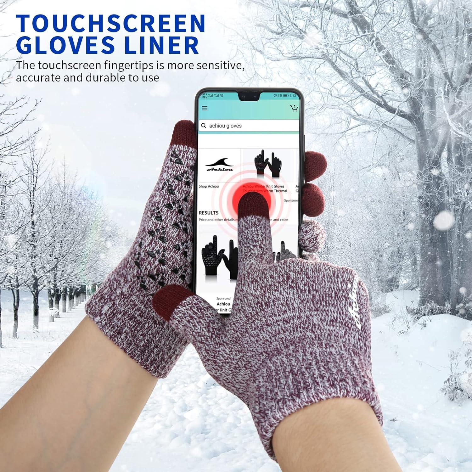 Achiou Winter Gloves, Glove for Men Women, Upgraded Touch Screen Texting Warm Running with Thermal Soft Knit Lining(White & Burgundy)