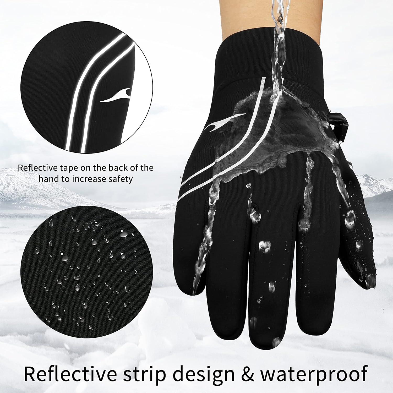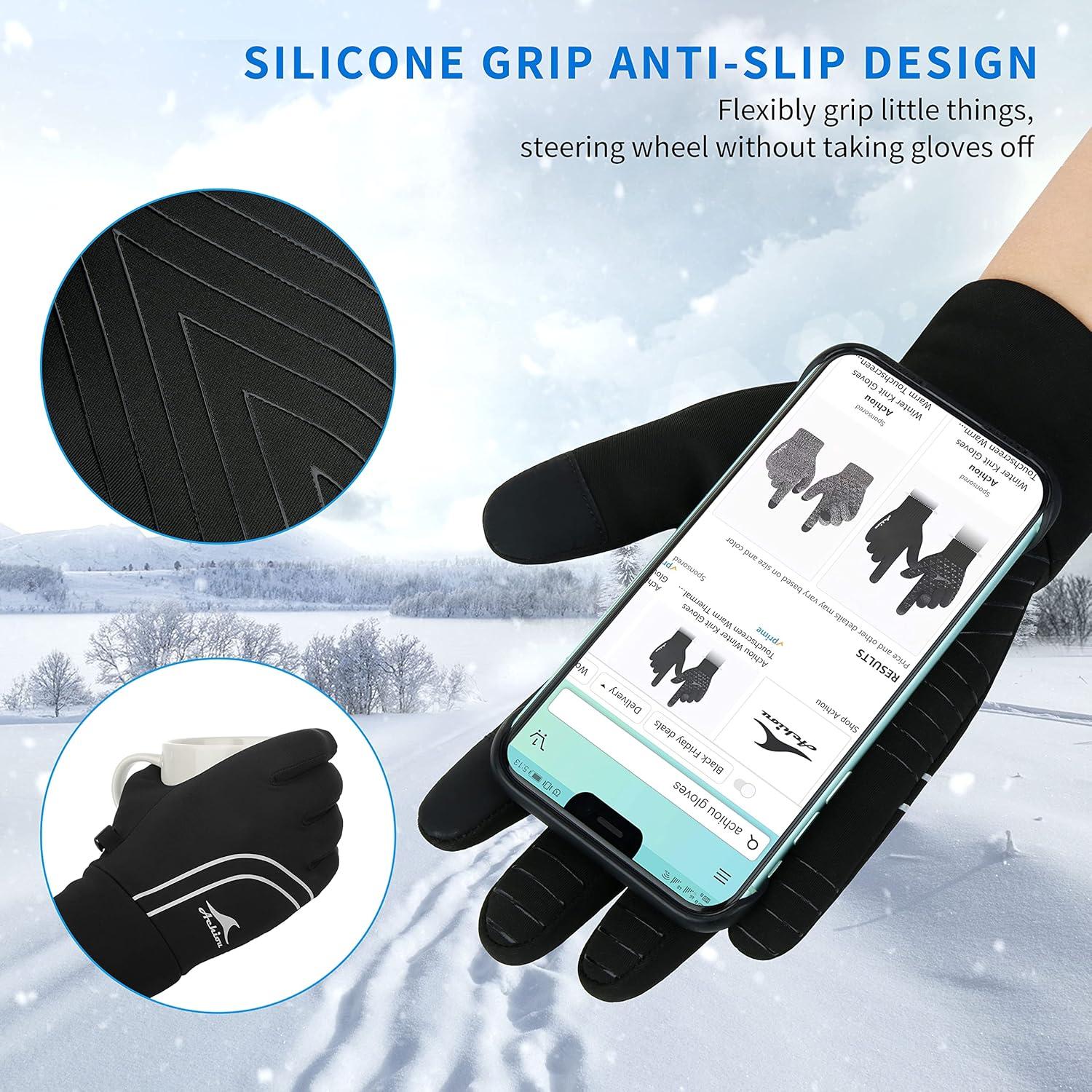 Achiou Winter Running Gloves for Men Women,Lightweight Touchscreen Liners Thermal Warm Gloves for Cycling,Driving, Hiking, Walking, Texting(Black)