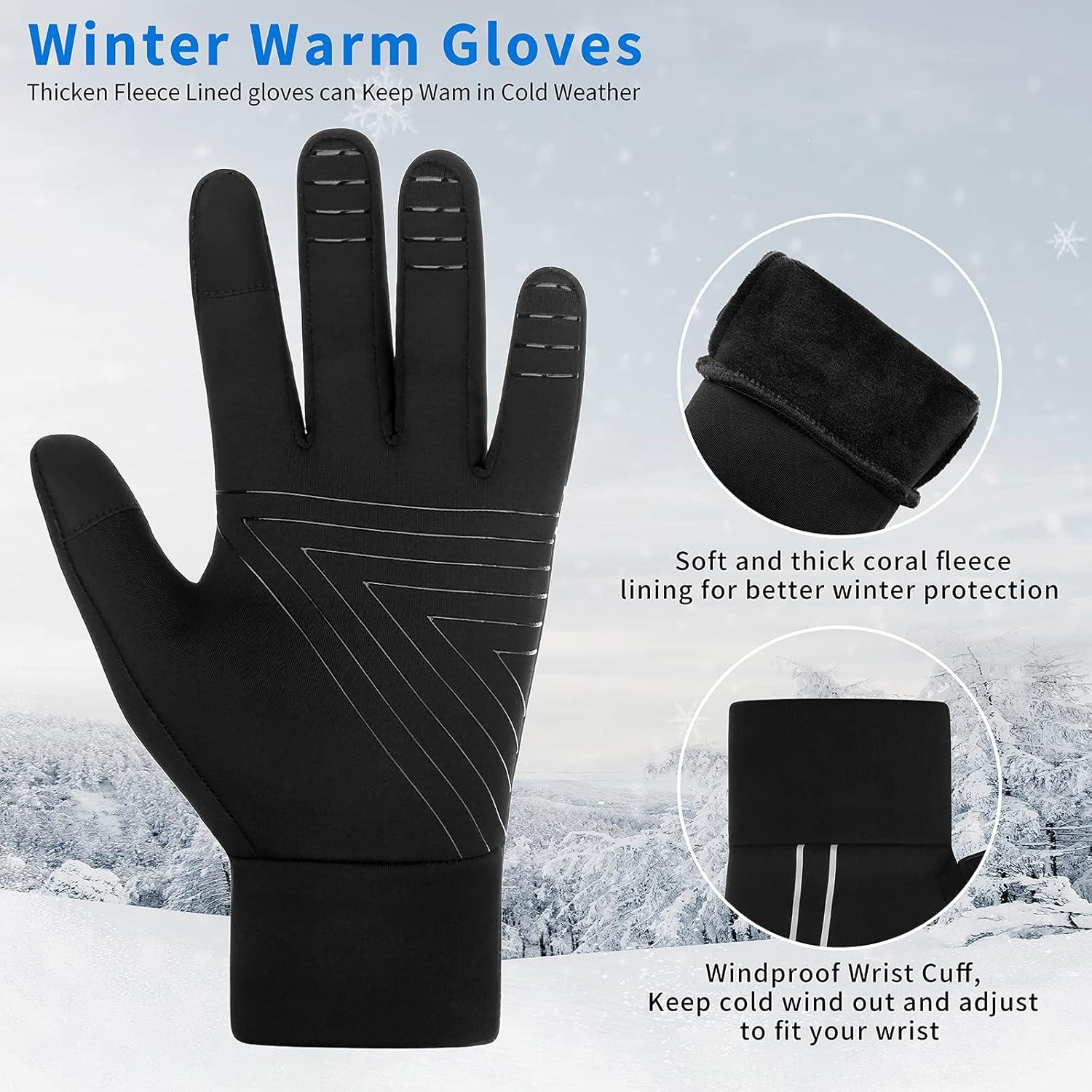 【Keep Warm】Even in the cold winter, you can continue to exercise. Our running gloves are lined with soft coral fleece with good thermal effect, and their elastic cuffs are designed to block cold winds. When you exercise above 25°, our waterproof gloves will keep you warm, but it's not suitable to be used alone in extremely cold weather and can be used as a liner to double the warmth