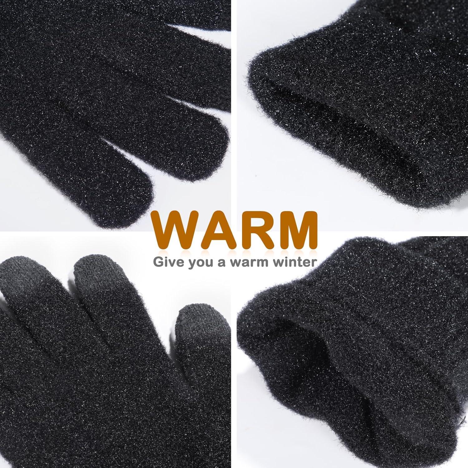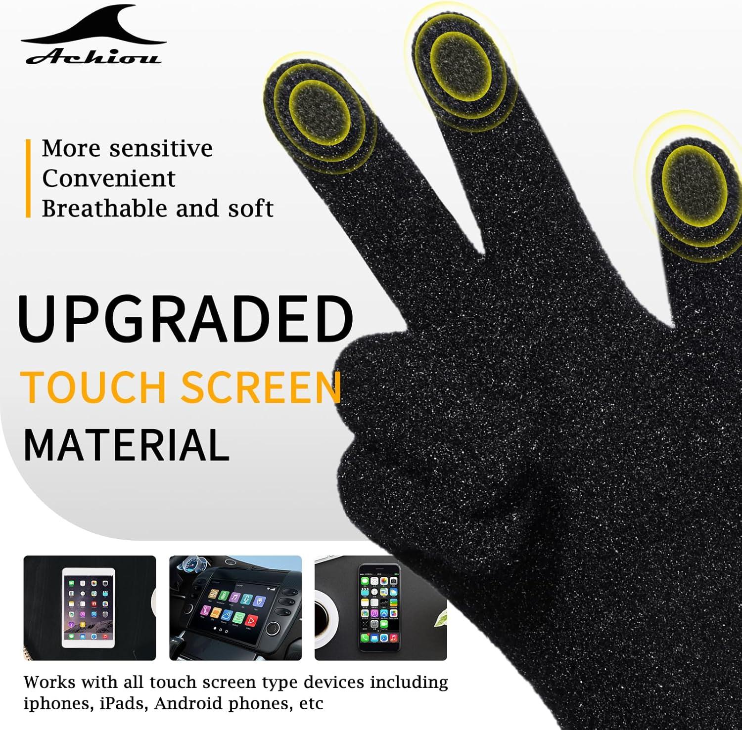 Achiou Winter Touchscreen Gloves Knit Warm Thick Thermal Soft Comfortable Wool Lining Elastic Cuff Texting for Women Men(Black)