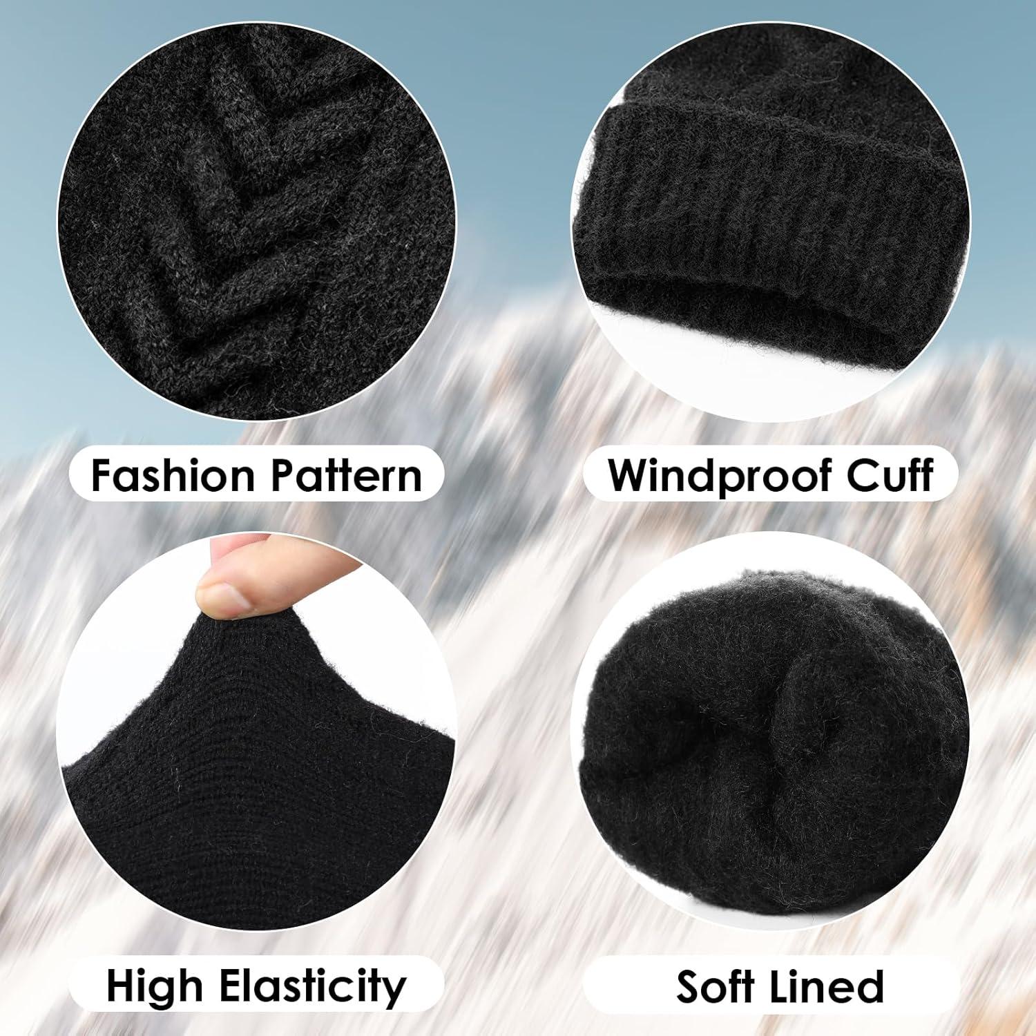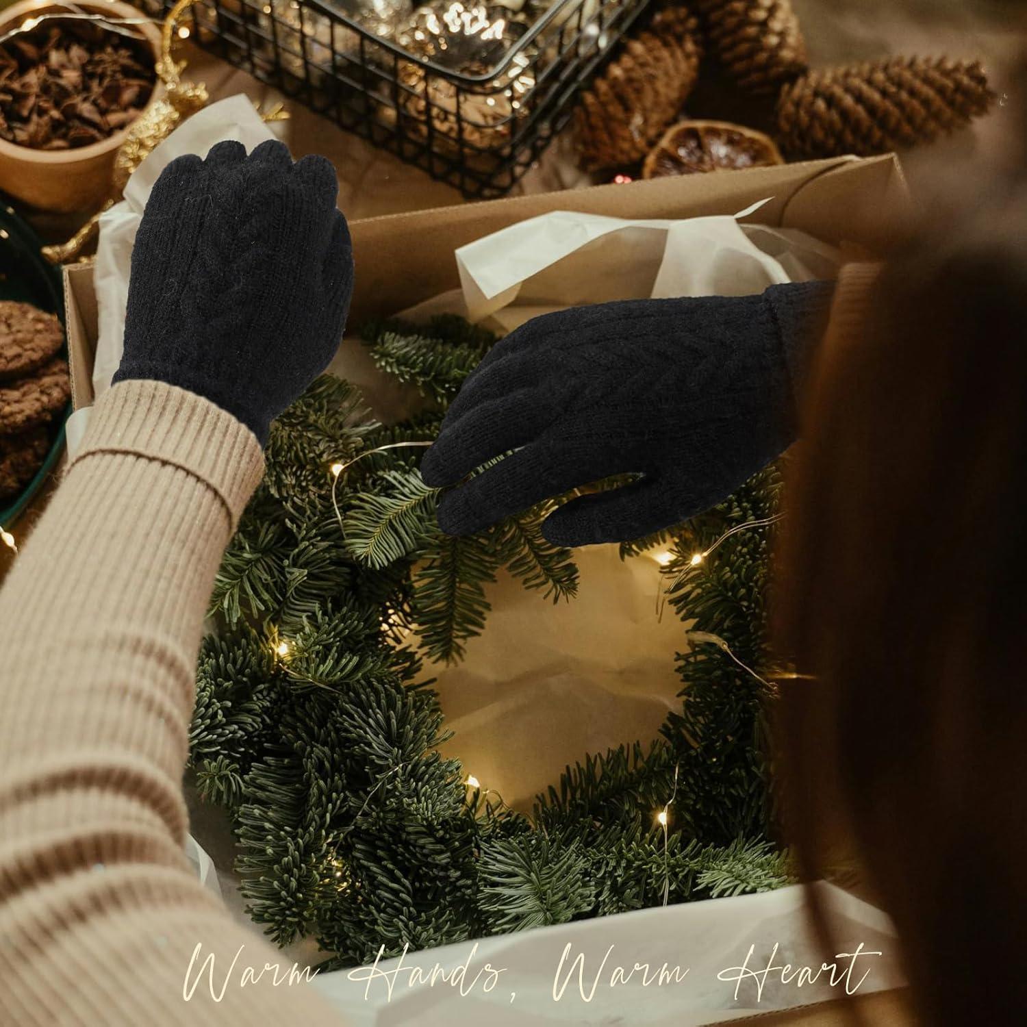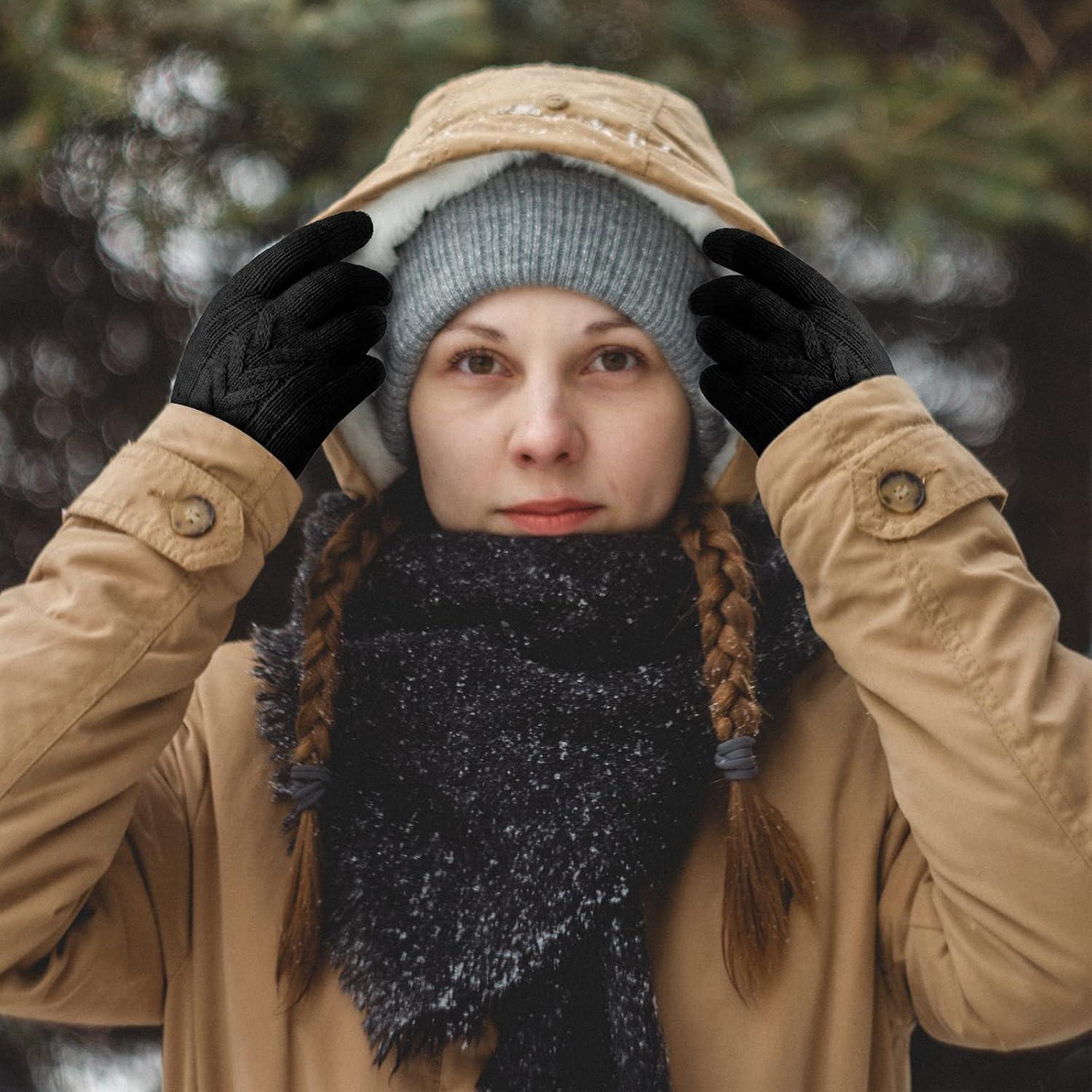 Achiou Women Winter Gloves, Touch Screen Texting Gloves, Elastic Soft Warm Knit Lined, One Size(Black)