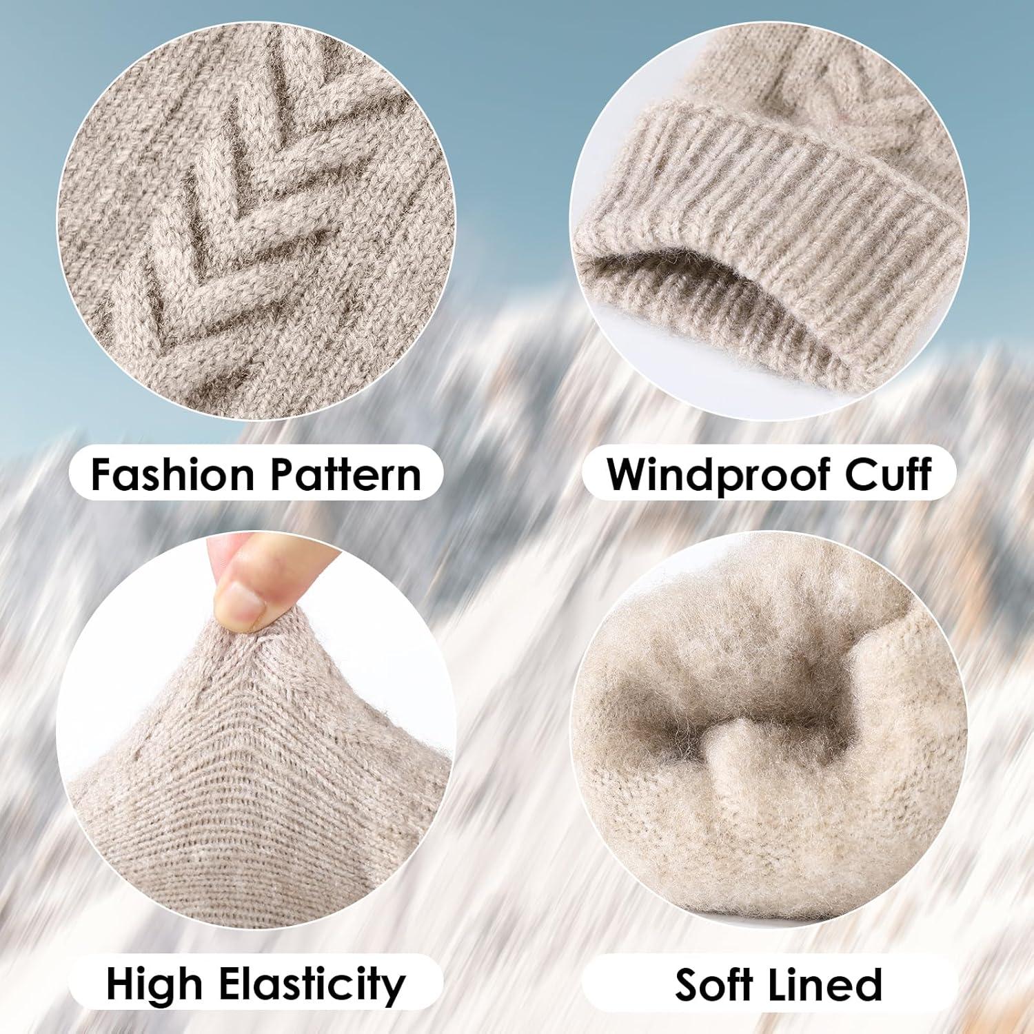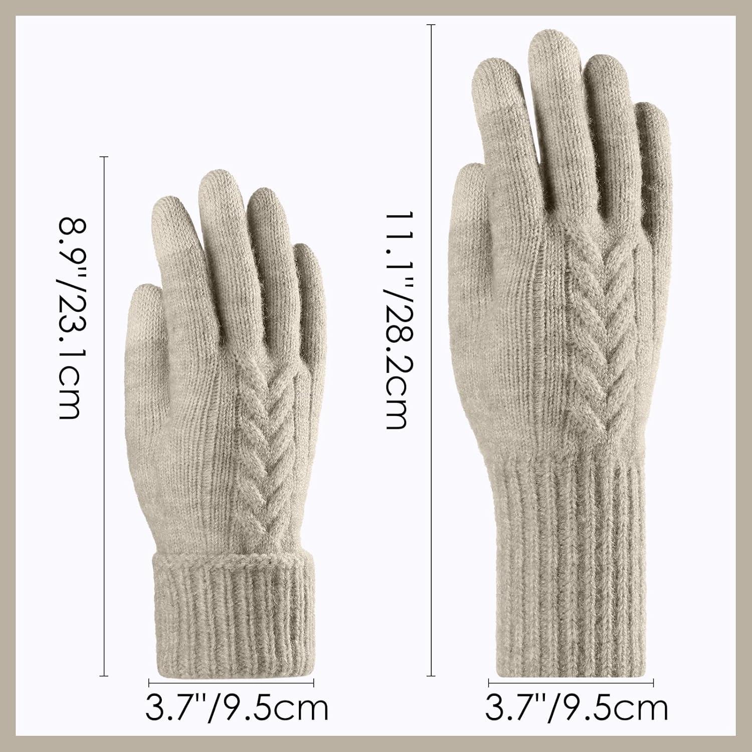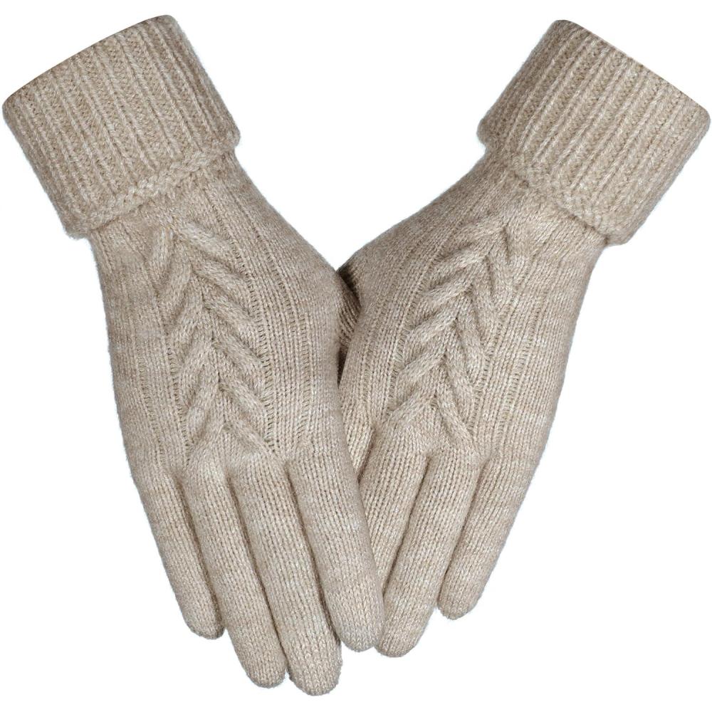 Achiou Women Winter Gloves, Touch Screen Texting Gloves, Elastic Soft Warm Knit Lined, One Size(Khaki)