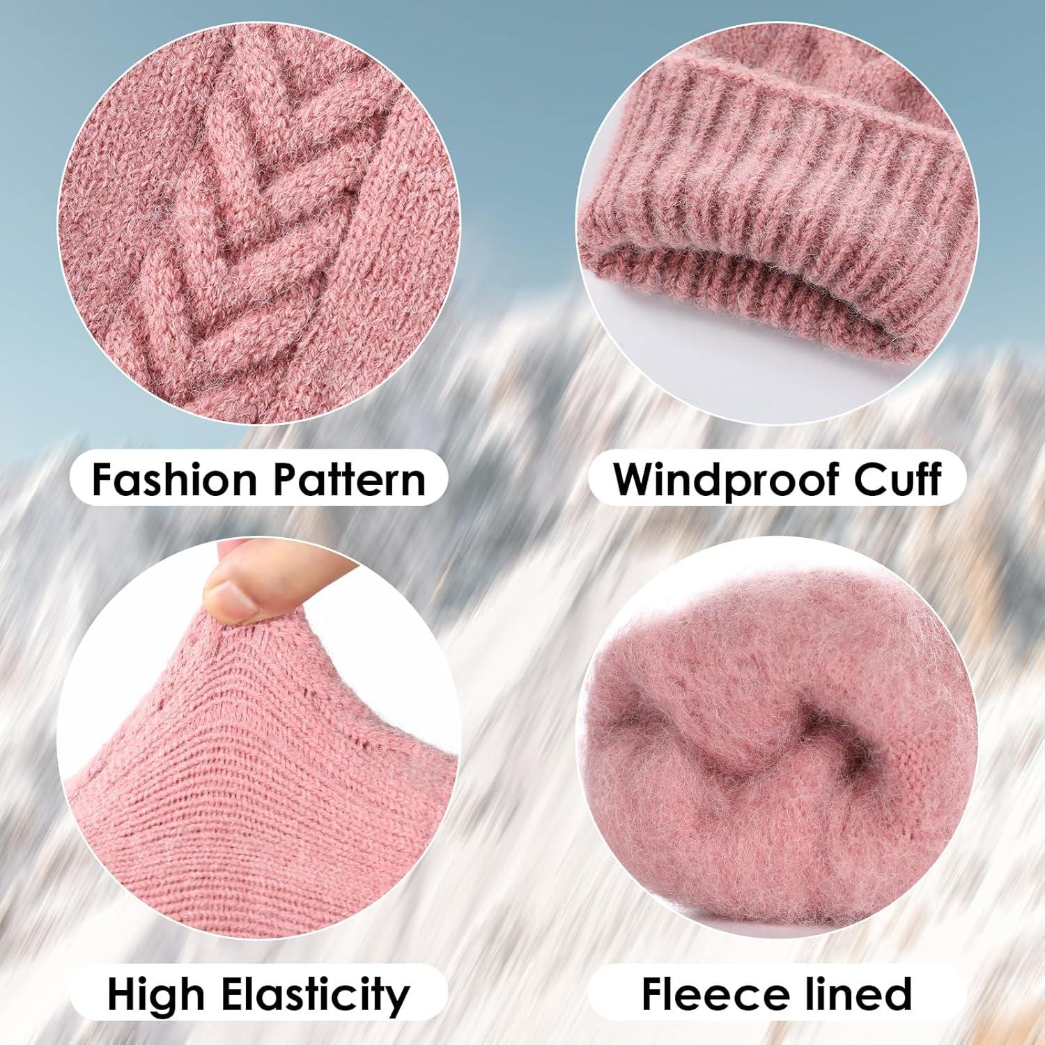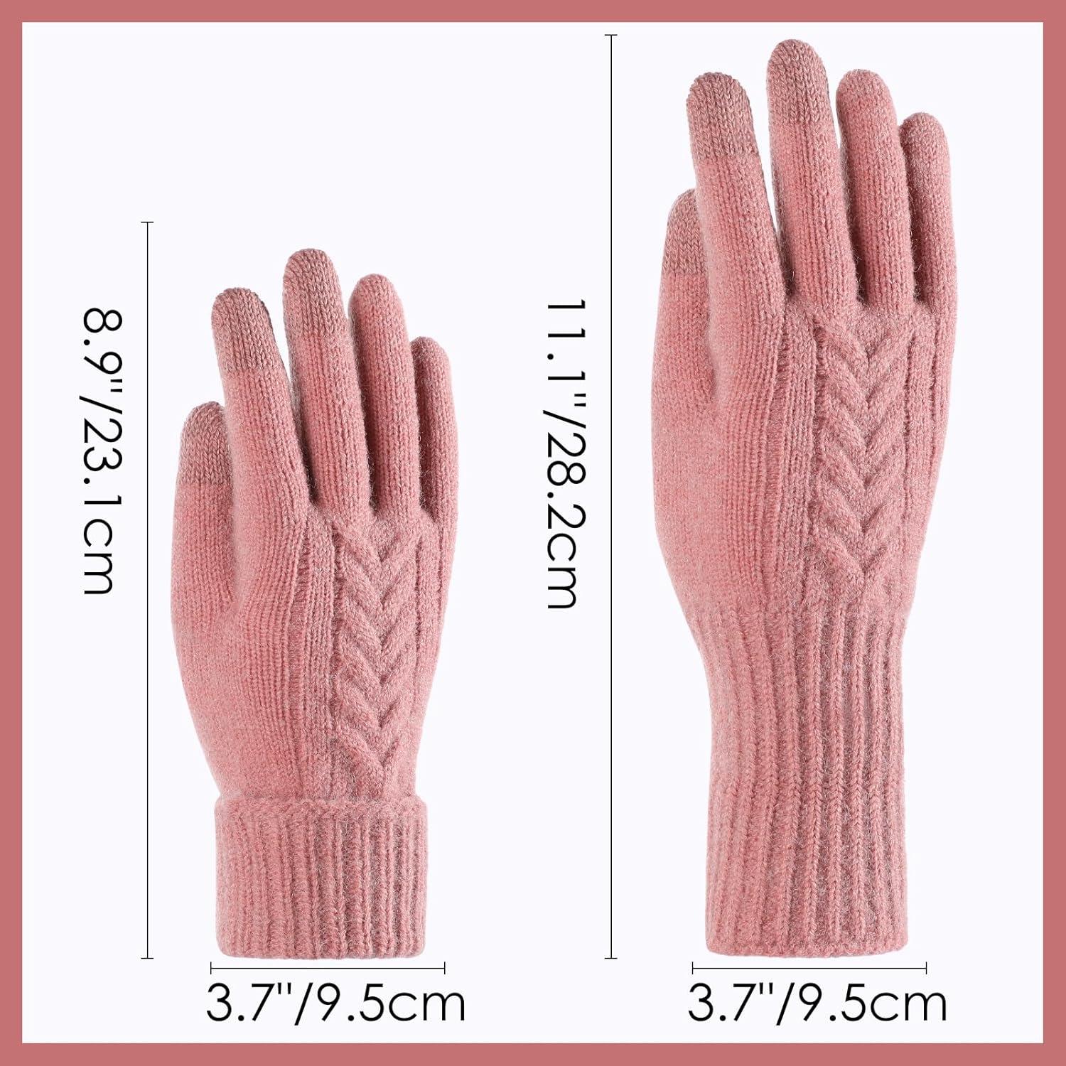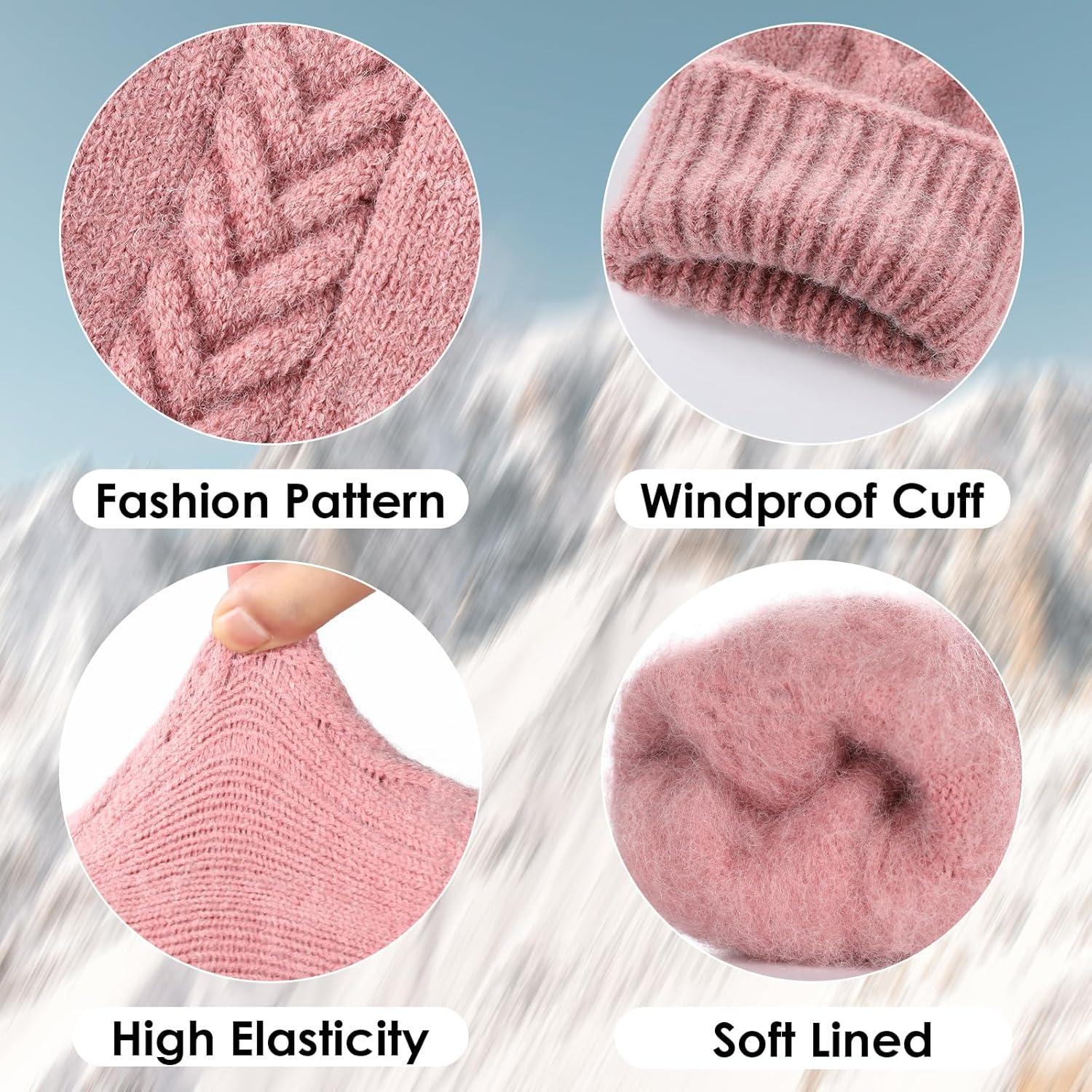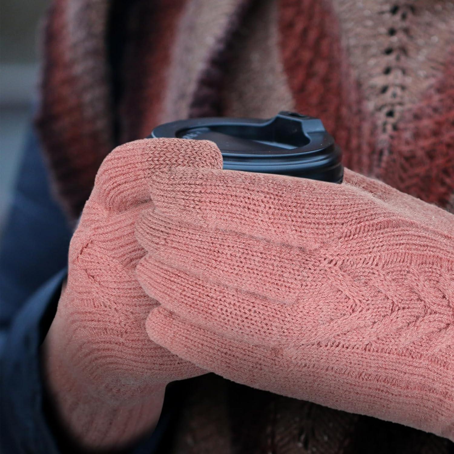 Achiou Women Winter Gloves, Touch Screen Texting Gloves, Elastic Soft Warm Knit Lined, One Size(Pink)