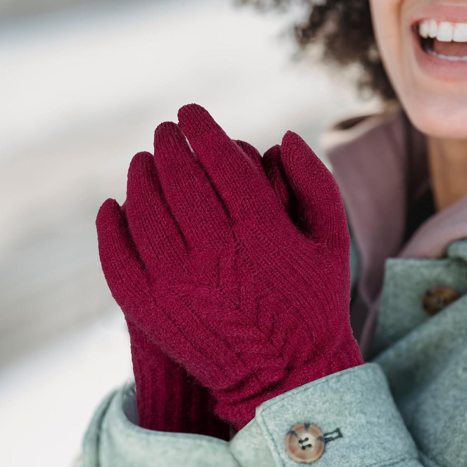Achiou Women Winter Gloves, Touch Screen Texting Gloves, Elastic Soft Warm Knit Lined, One Size(Red)