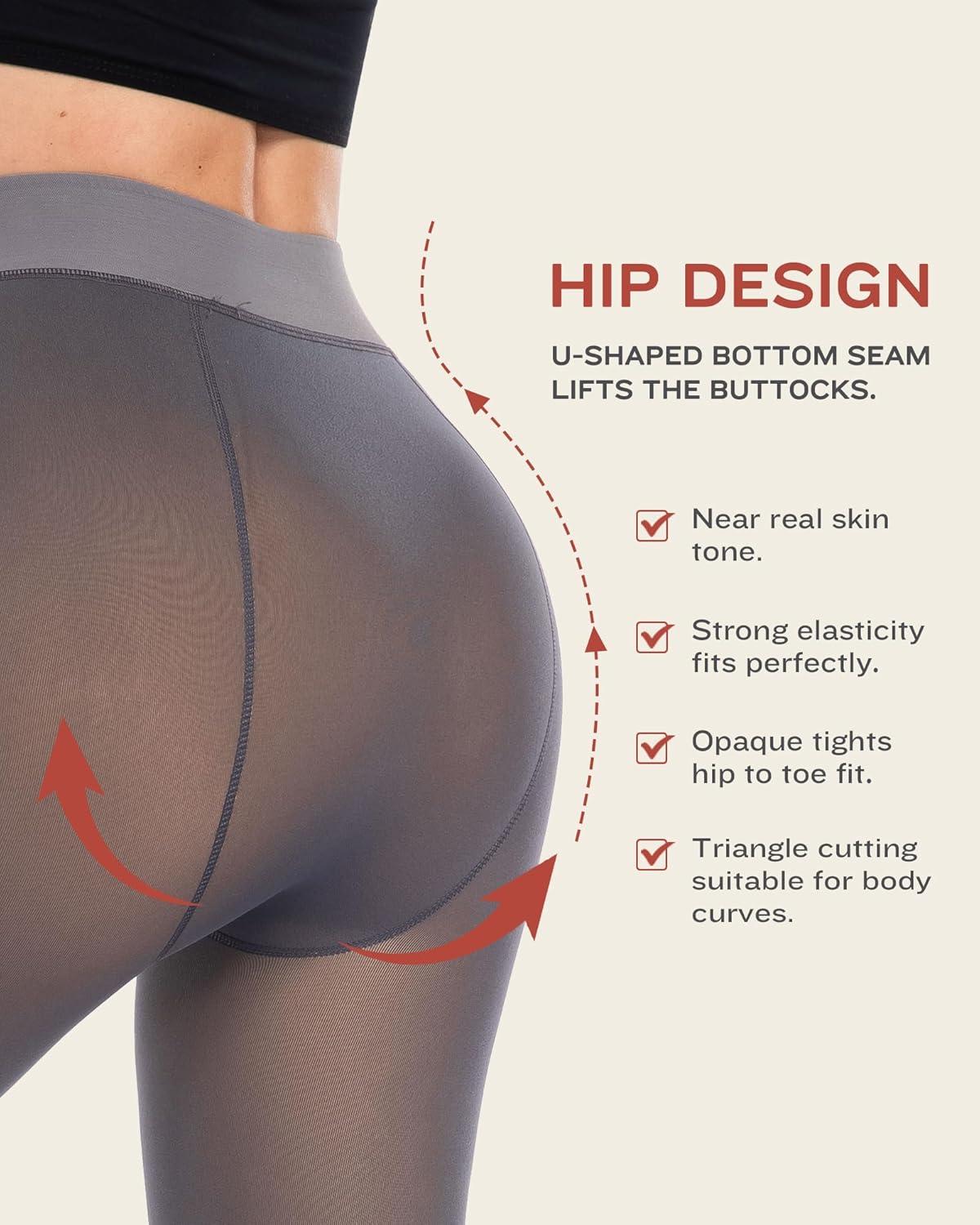 LZYVOO Fleece Lined Winter Tights Women – Fake Translucent Warm Pantyhose Sheer Thick Thermal Tights Leggings(3 Packs – Black Black Grey)