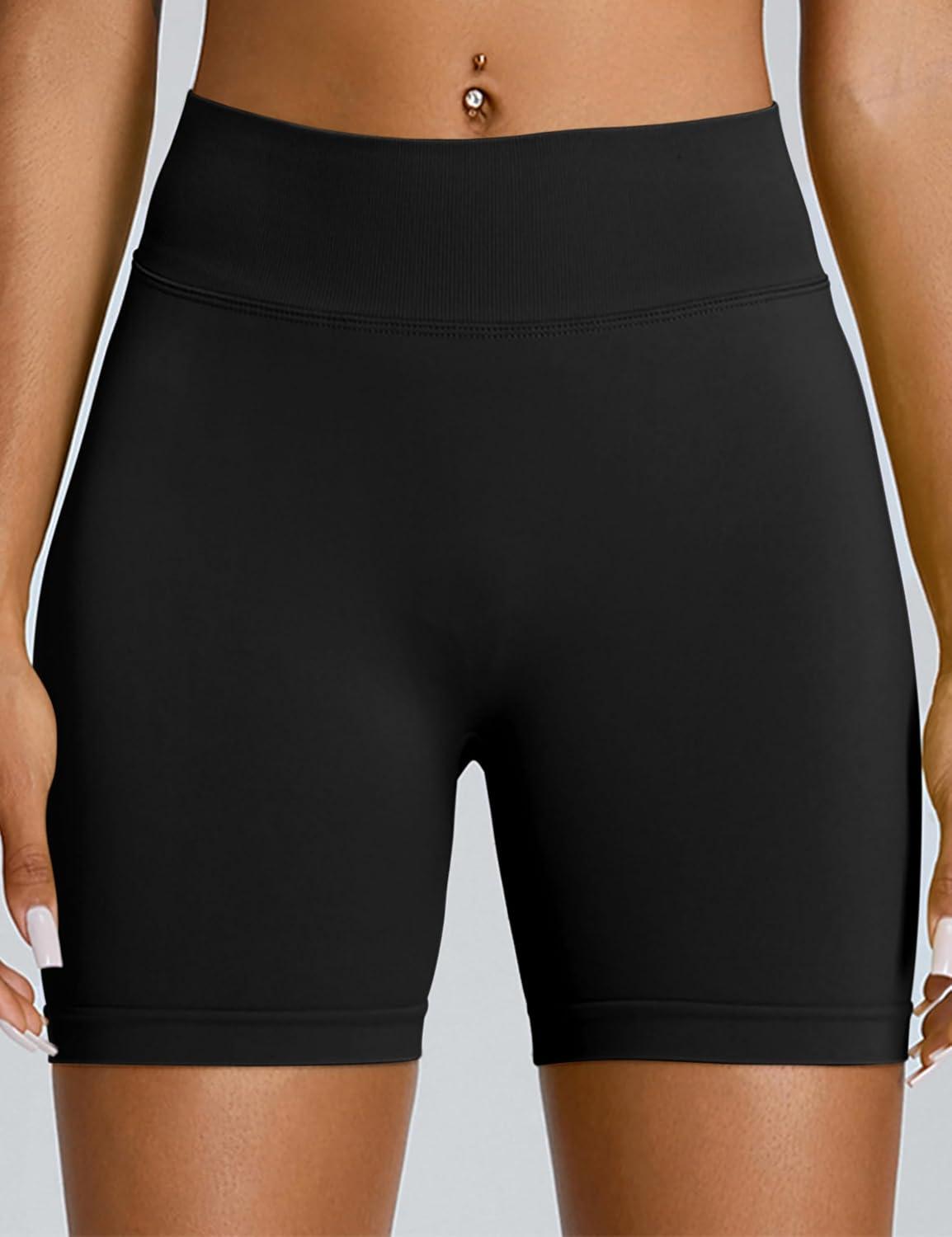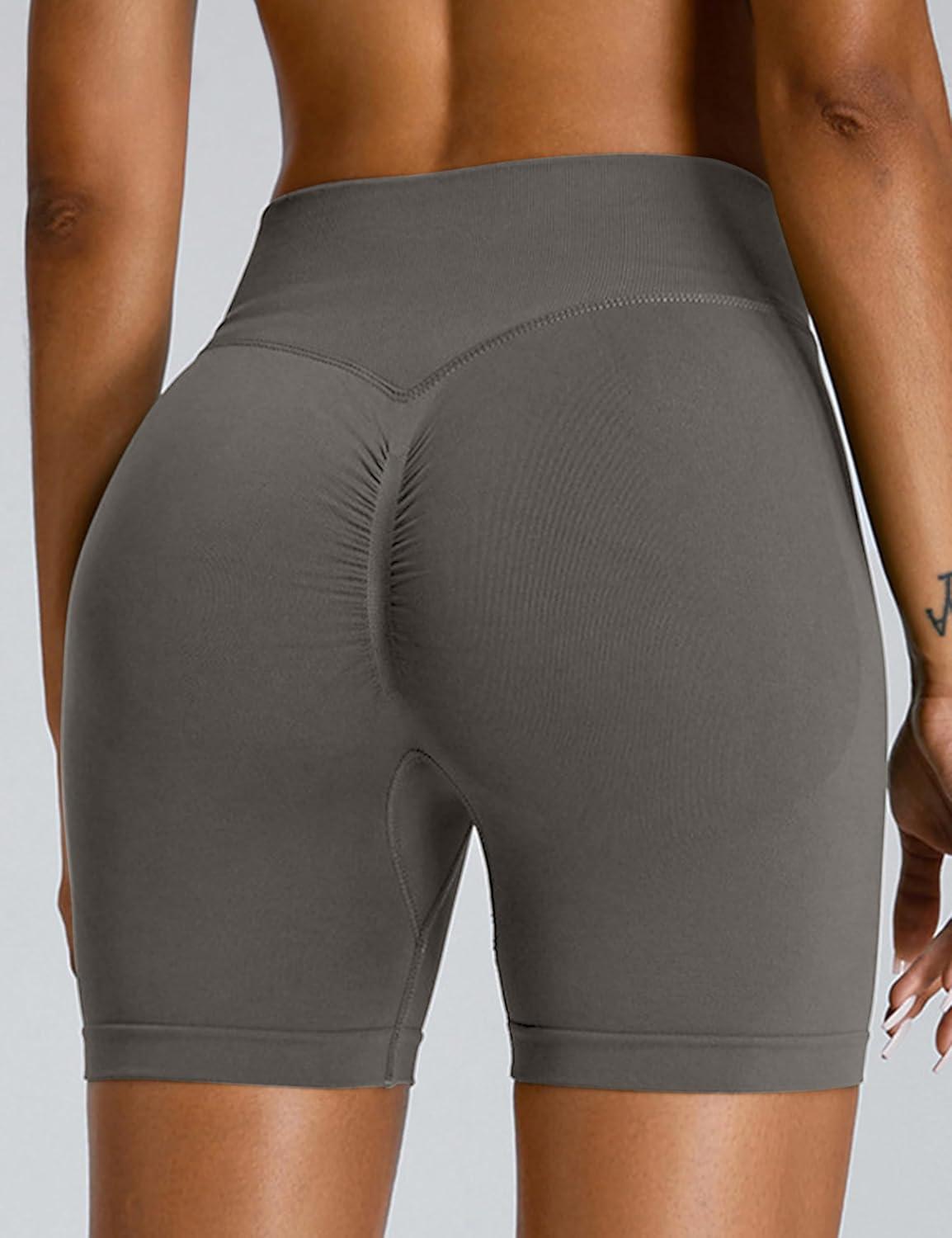 OLCHEE Womens Workout Shorts Seamless Scrunch Butt Lifting 3 Pack Yoga Gym Athletic High Waisted Tummy Control Booty 4.1″(Style3: Black + Khaki + Pink)